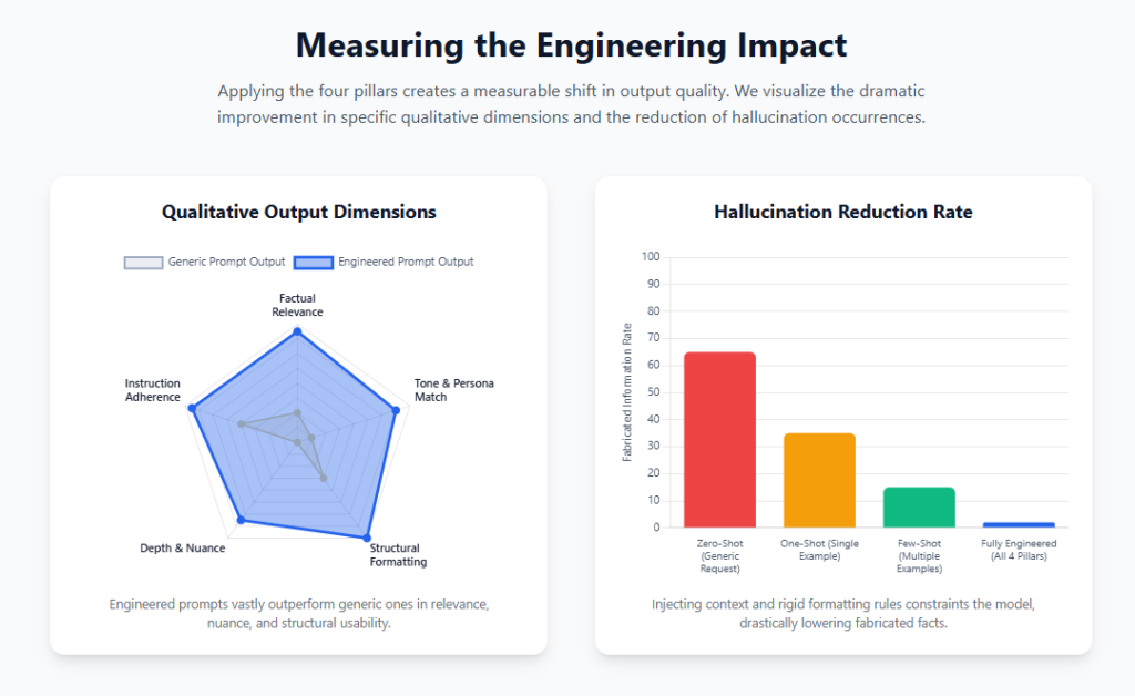 - Hallucination Reduction Rates: Utilizing A/B testing methodologies across large sample inputs to calculate the exact percentage drop in fabricated data after introducing new constraints, context retrieval, or verification steps.