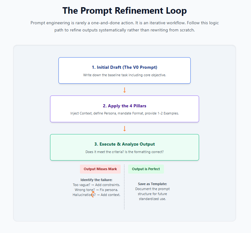 The theoretical construction of an instruction payload is merely the first phase of the AI engineering lifecycle. Because LLM development is inherently non-deterministic, creating production-ready systems requires a rigorous, iterative mindset modeled around the scientific method.